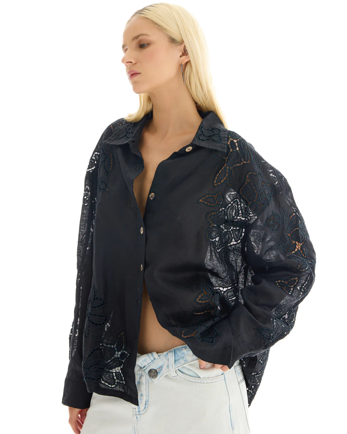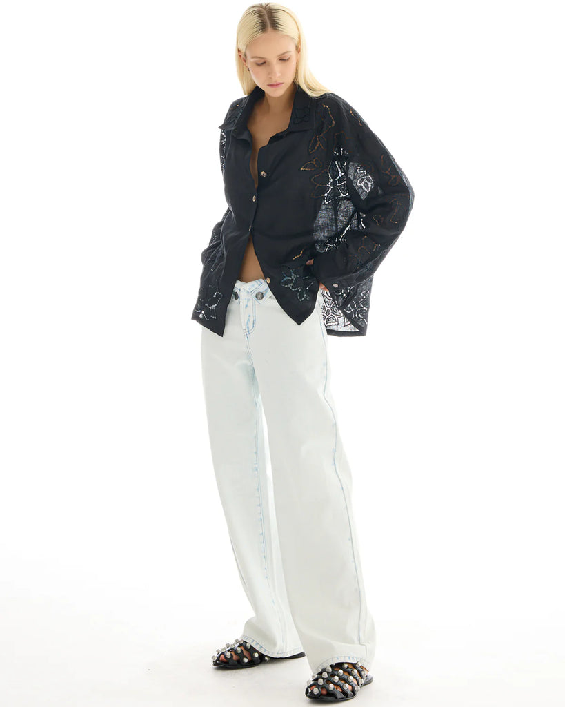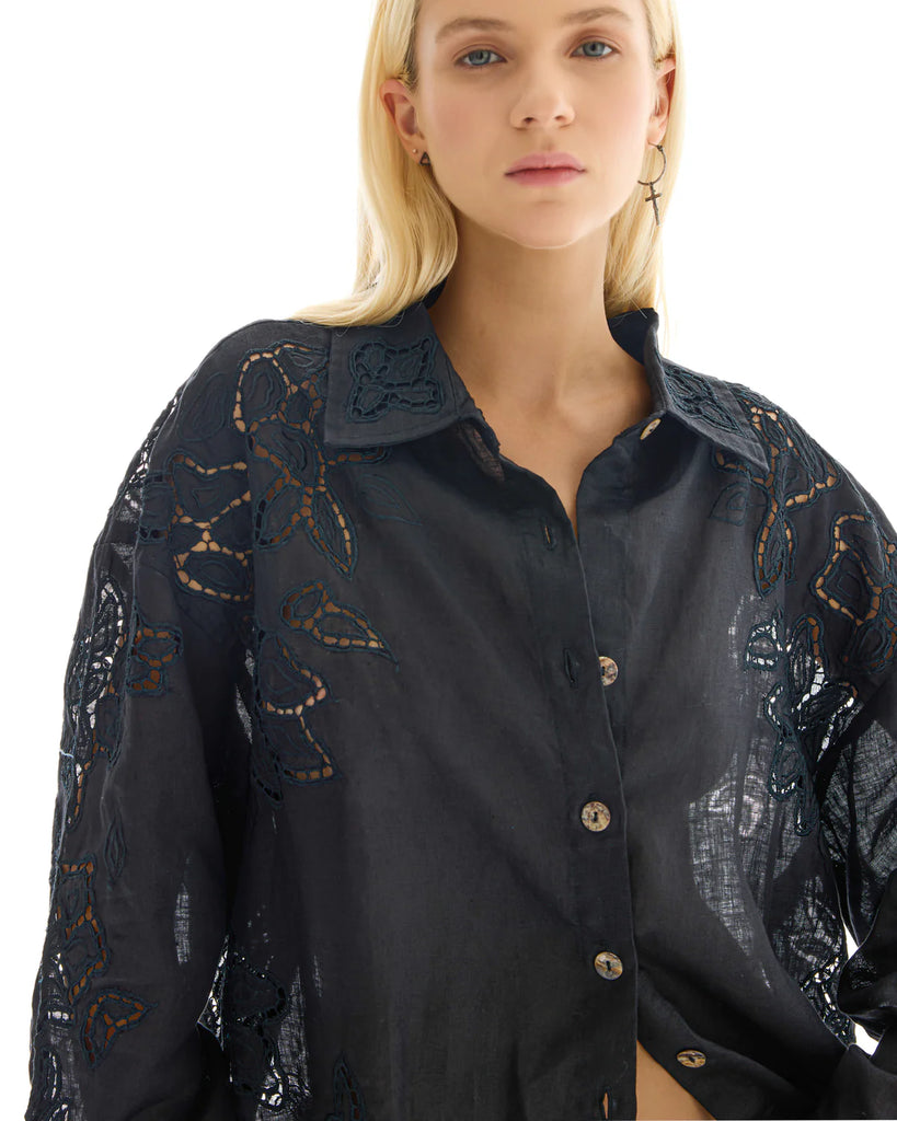 THE TALES Ophelia Hand Embroidered Cut Out Floral Linen Shirt