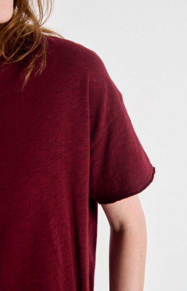 The Sonoma women's short-sleeved T-shirt, an iconic American Vintage piece, combines simplicity and character. Its thick, textured cotton with a brushed interior offers unparalleled softness, while its subtle slub effect adds a unique, modern touch. Timeless and versatile, this basic can be worn in all seasons and adapts to any style, whether on its own or layered under a knit.