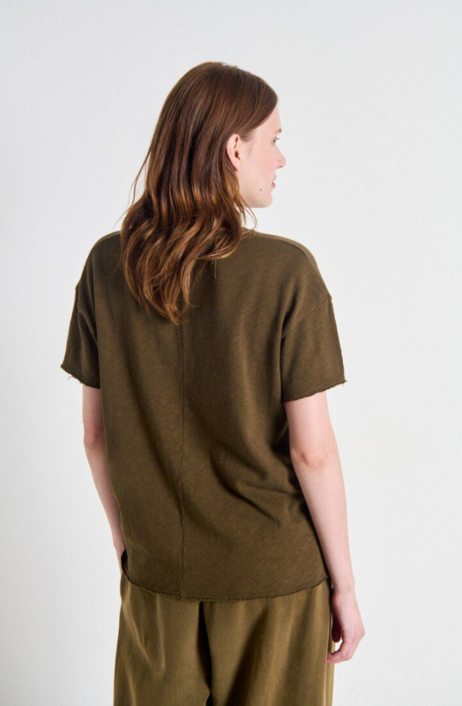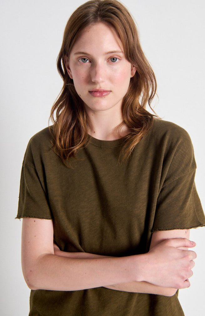 The Sonoma women's short-sleeved T-shirt, an iconic American Vintage piece, combines simplicity and character. Its thick, textured cotton with a brushed interior offers unparalleled softness, while its subtle slub effect adds a unique, modern touch. Timeless and versatile, this basic can be worn in all seasons and adapts to any style, whether on its own or layered under a knit.