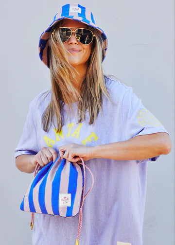 CAT HAMMILL STRIPE DRAWCORD BAG - ROYAL/MUSK
