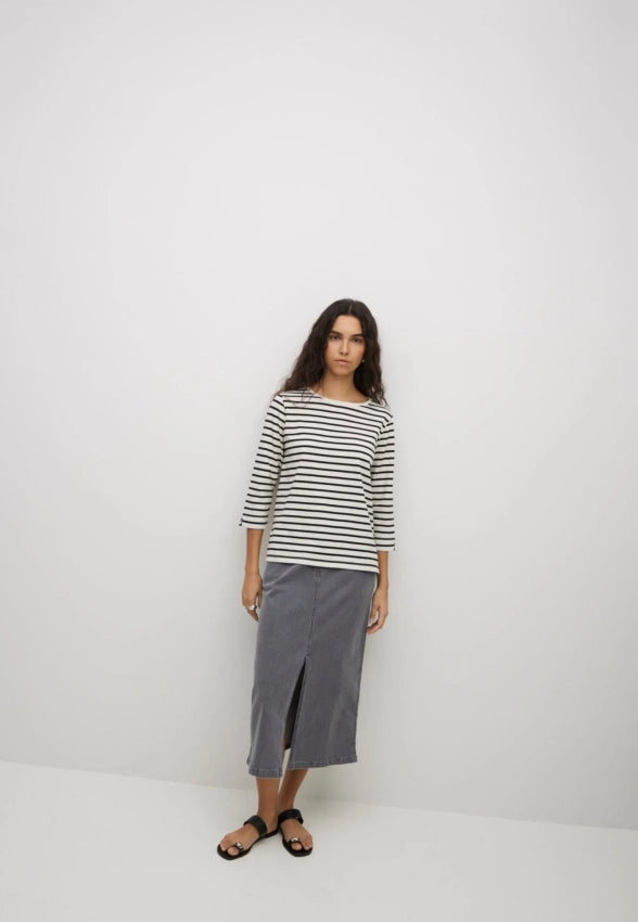 YERSE Stripe Cotton Top in Black