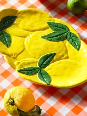 Display your delicious lemons or other juicy fruit on this lemon plate. Of course, it's also suitable for storing things such as your bicycle keys or favourite lipstick. Dimensions (cm): 28.5L x 19W x 3H Made from dolomite Not microwave-safe Care instructions: Dishwasher-safe About &Klevering&K Amsterdam is a Dutch design and home decor company founded in 1992 by Jan van der Klooster and Emiel Hetsen in Amsterdam. Known for their original designs and accessories that embody quirky Dutch cool, their products combine bold colours, playful patterns, and traditional-contemporary fusion. &K's designers take their inspiration from modern art and contemporary vintage, creating eclectic gifts and accessories to enrich your home with an exuberant, yet laid-back charm