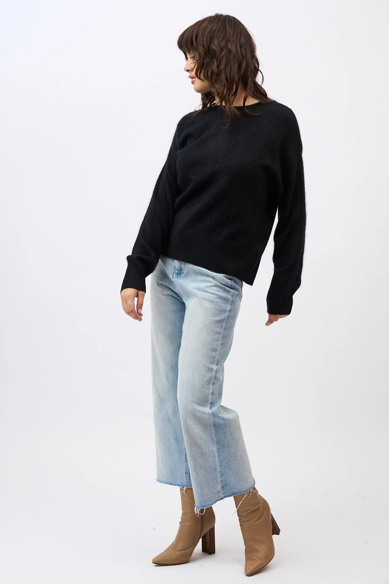 Crafted from an artisan-spun pairing of brushed cashmere and fine Merino, the Edith offers a multidimensional texture that is visually striking yet exceptionally light. Featuring a refined drop shoulder and fluid drape, it brings a soft-focus aesthetic and quiet luxury to the modern capsule wardrobe.
