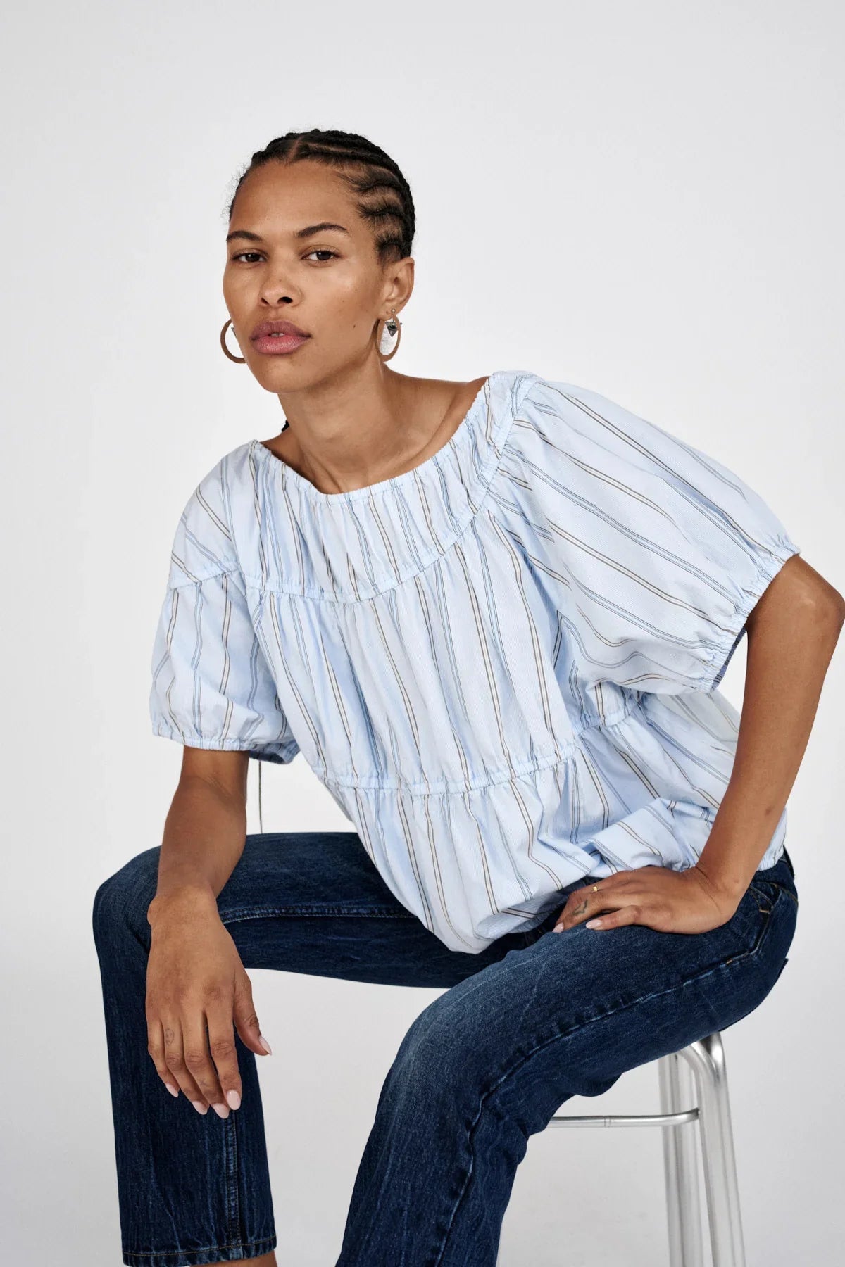 RABENS SALONER Lotte Top Blue Pyjama Stripe