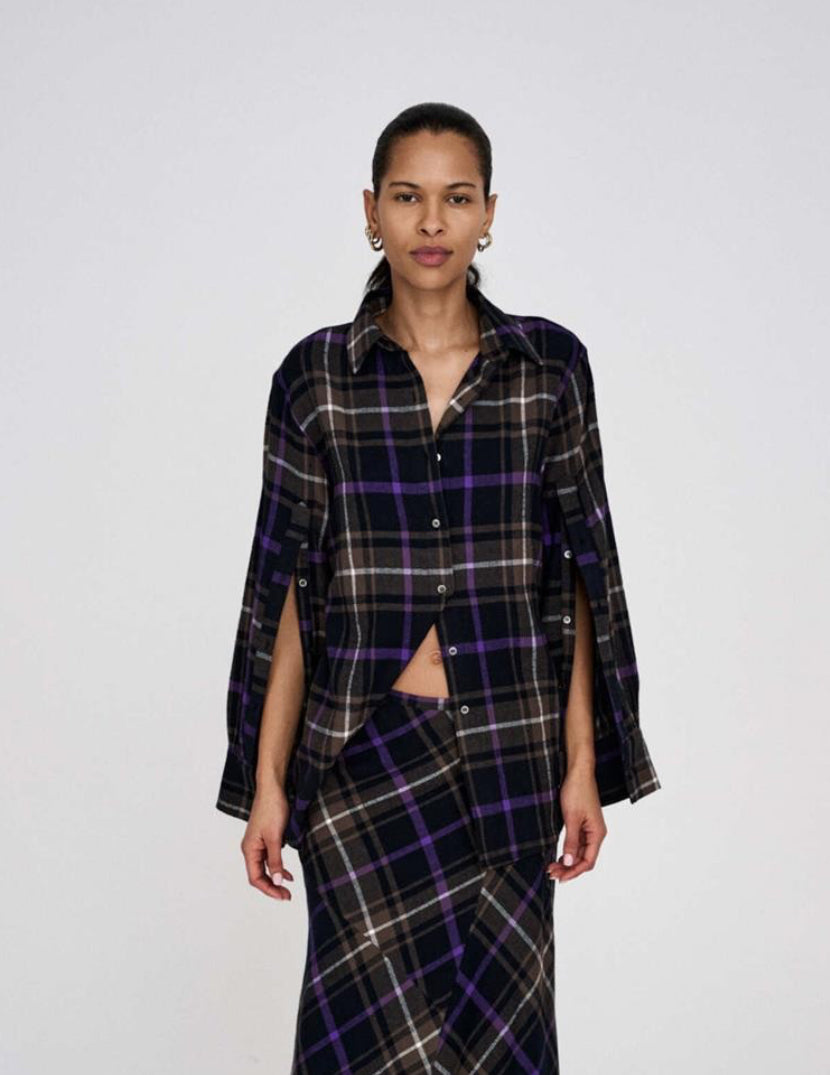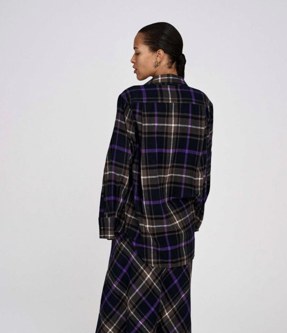 RABENS SALONER Purple Check Combo Shirt