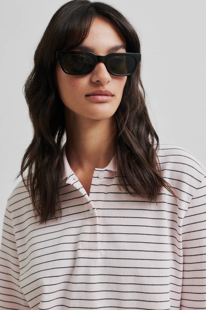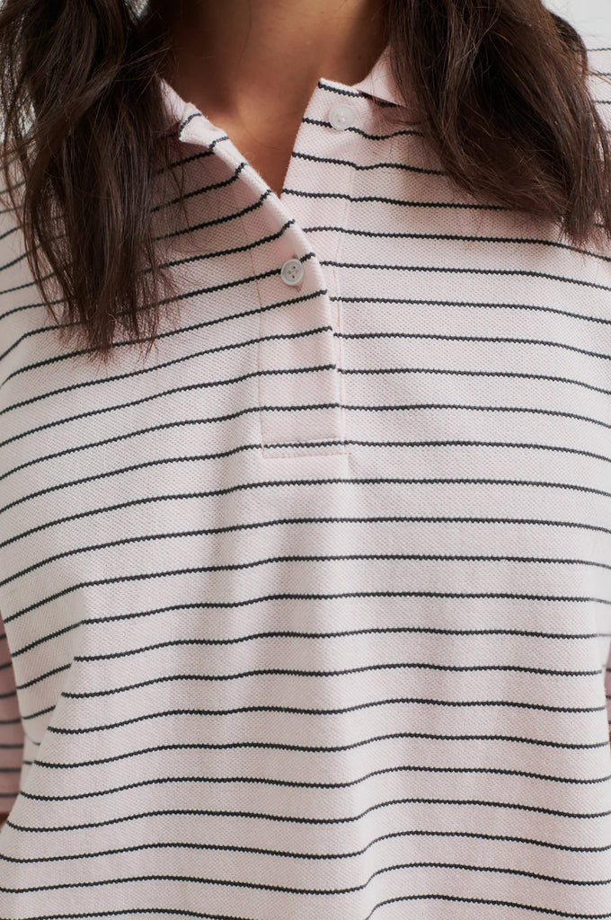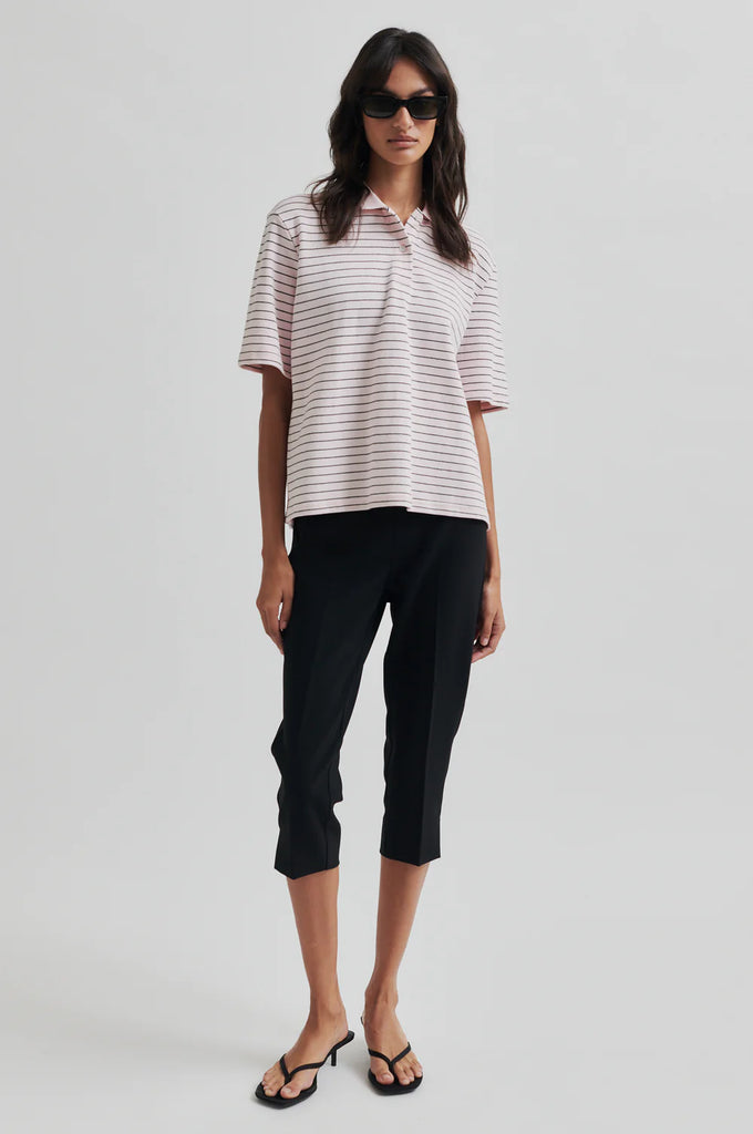 Second Female striped polo. The polo is made in soft cotton with all-over stripes. Featuring a polo collar and button fastening at the front. Short sleeves and ribbed collar.