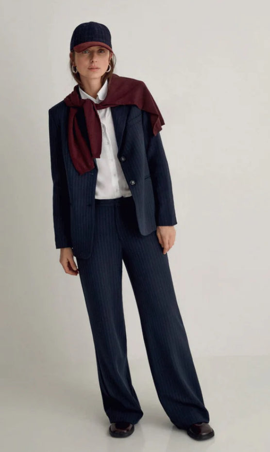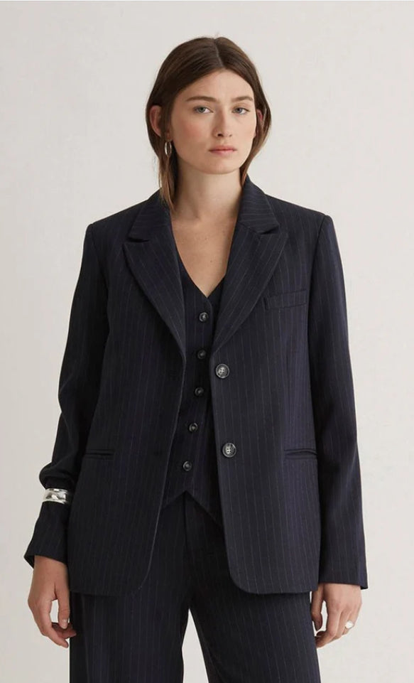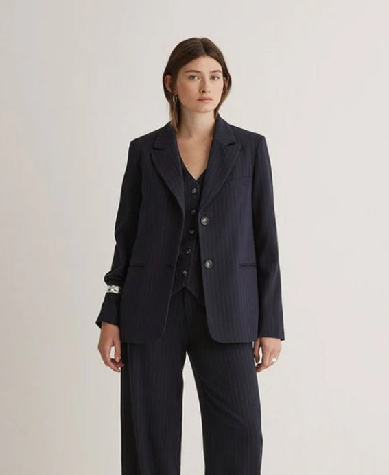 YERSE Striped Blazer Navy